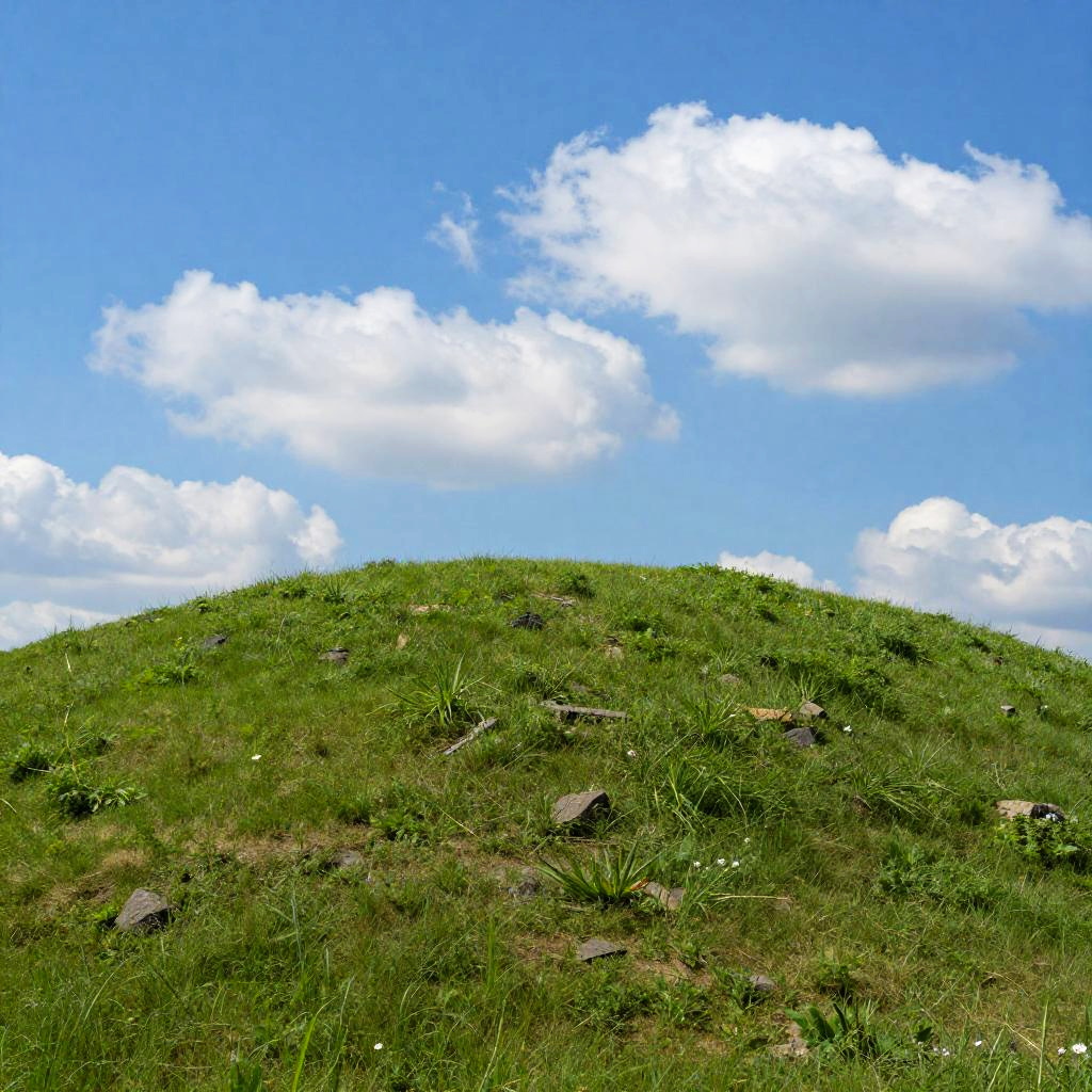 Windows xp default wallpaper recreated with enhanced photo realism, capturing iconic green hill, fluffy white clouds, and vibrant blue sky, ultra detailed, morning sunlight