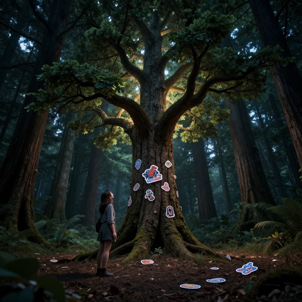 Woman Gazing at Magical Forest Tree