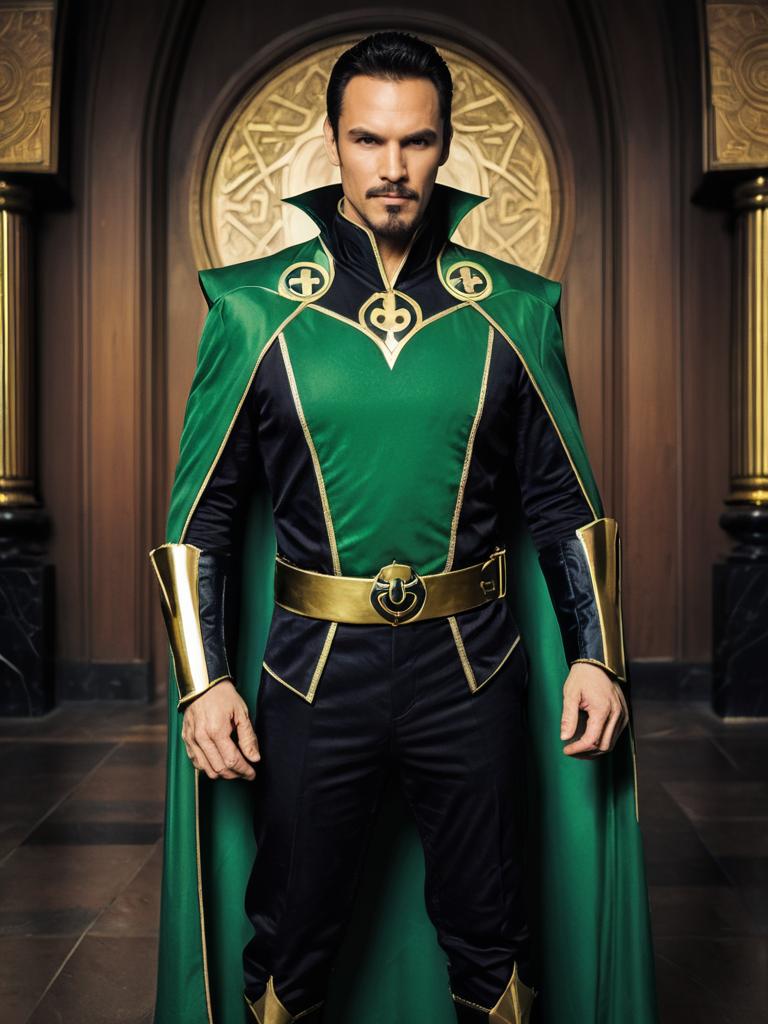 Arrow costume adult, 1boy, male focus, solo, boots, standing, weapon, black hair, full body, facial hair, belt, indoors, pants, holding, brown footwear, long sleeves, realistic