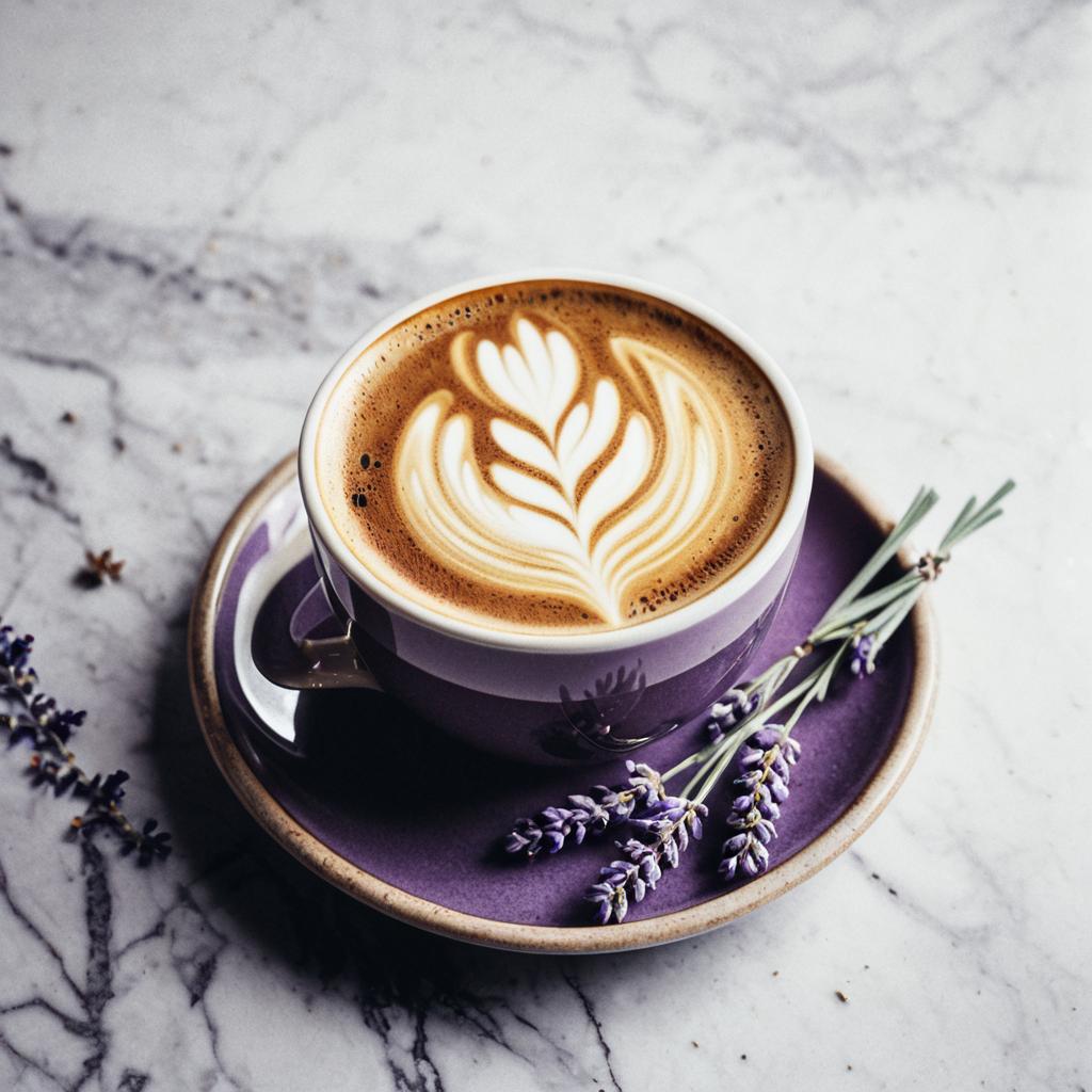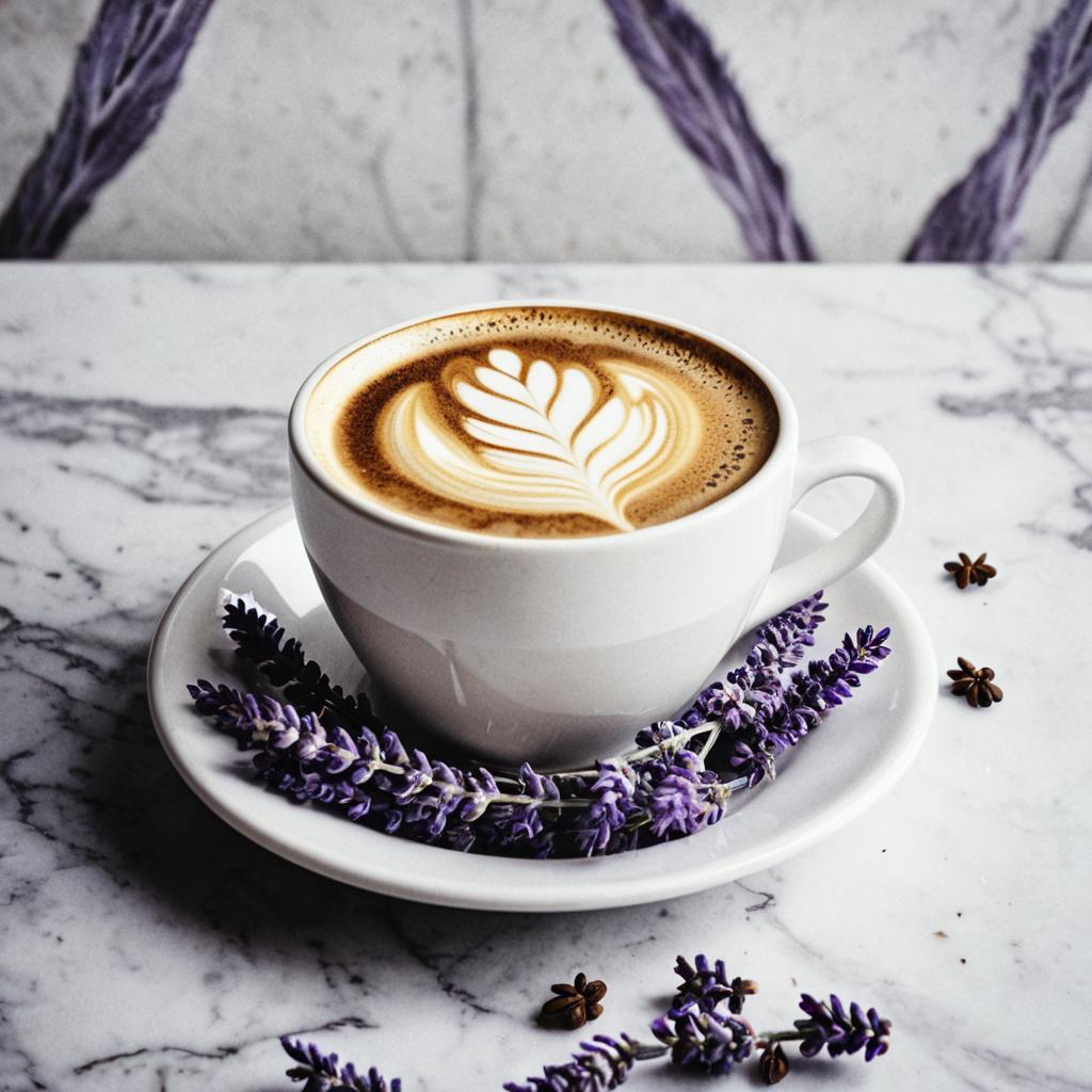 Latte with Lavender on Marble