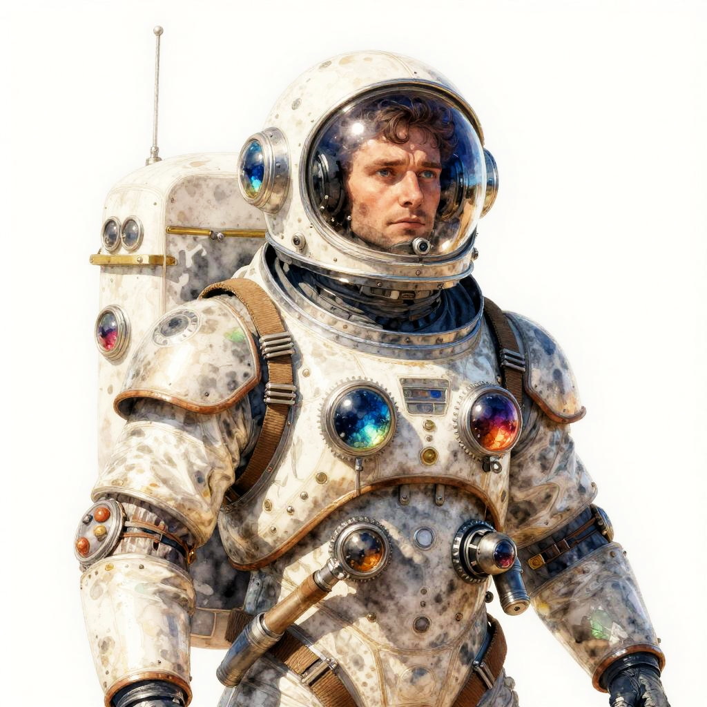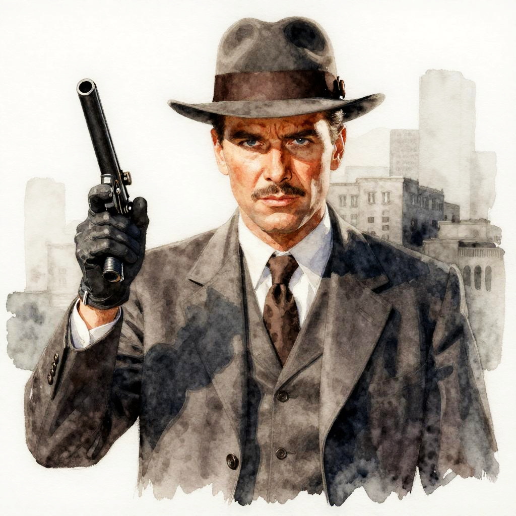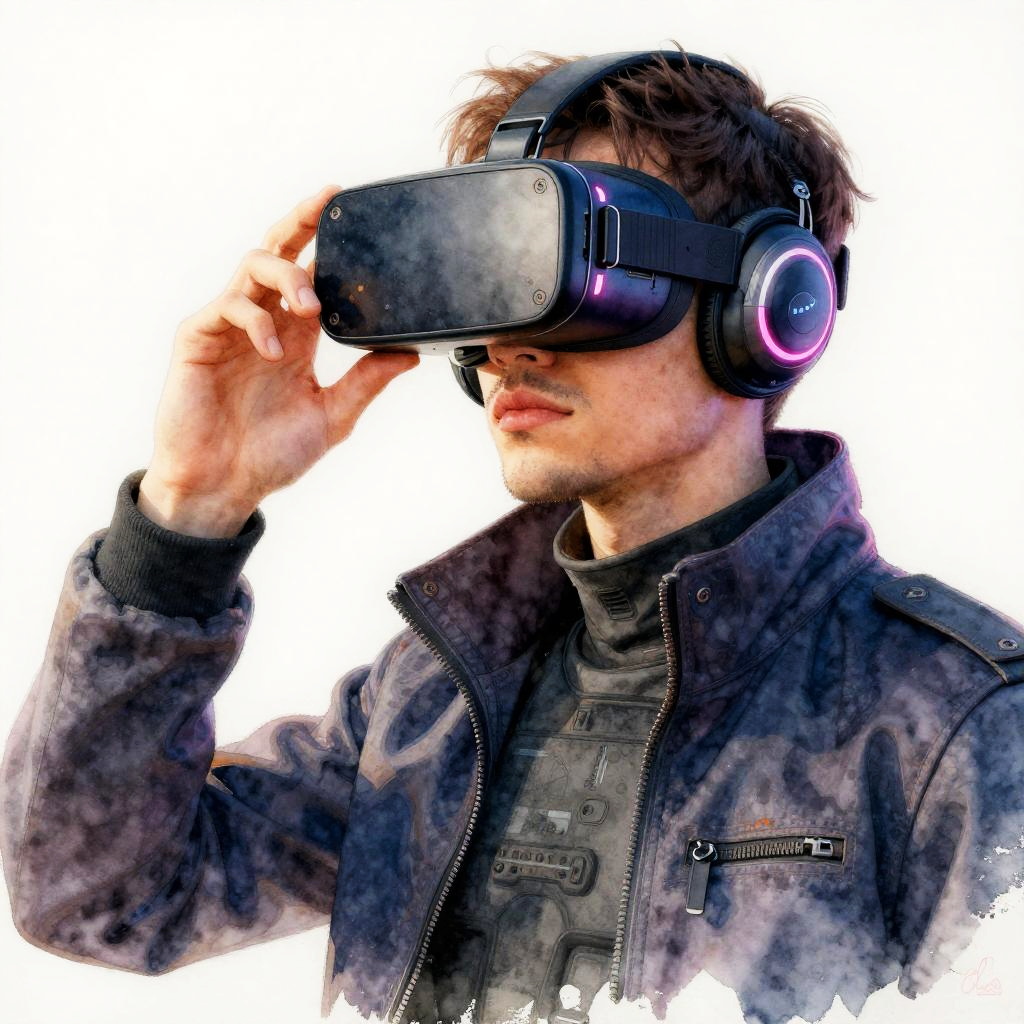 Hyper-detailed watercolor painting of a 1980s new wave musician, in sharp focus with cool neon colors.