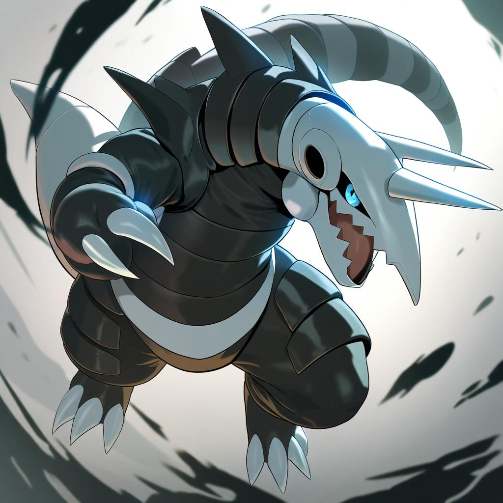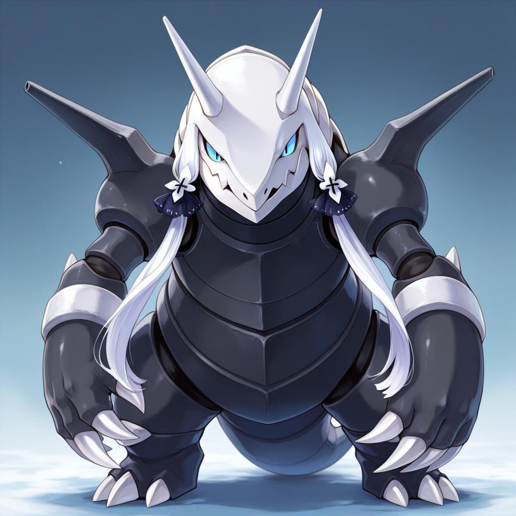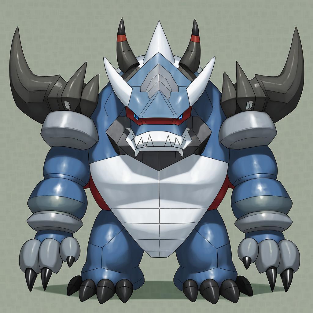 Aggron, pokemon, no humans, horns, blue eyes, pokemon (creature), claws, by artist wlop, animagine