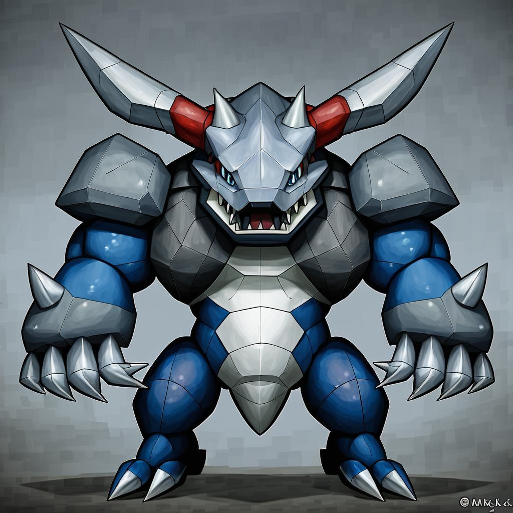 Illustration of Aggron, pokemon in the style of Wlop