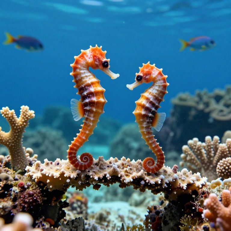 Vibrant Seahorses on Coral Bridge