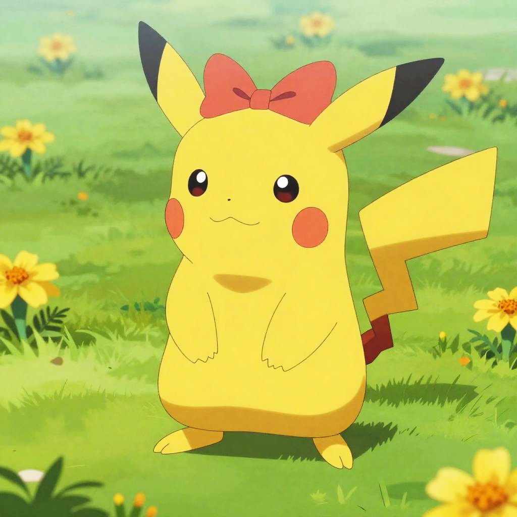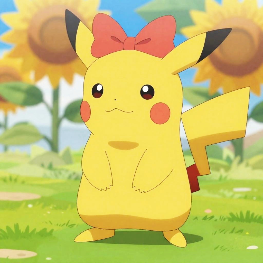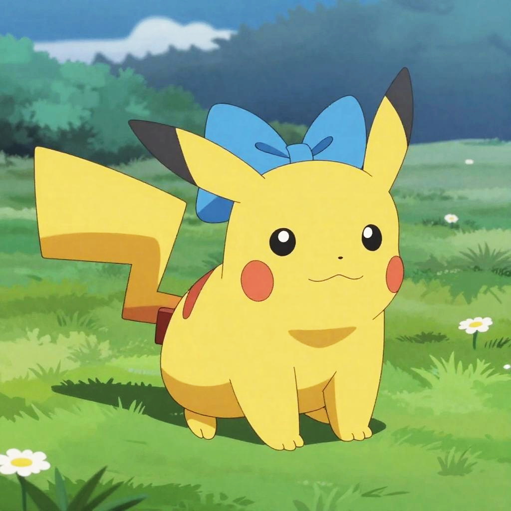 Full body, pokemon_creature, no_humans, indoors, forest, night, animal_focus, shiny_pokemon, alternate_color, sitting, looking_at_viewer, closed_mouth, blush, pink_eyes, teal_bow, rose, detailed_visual_style