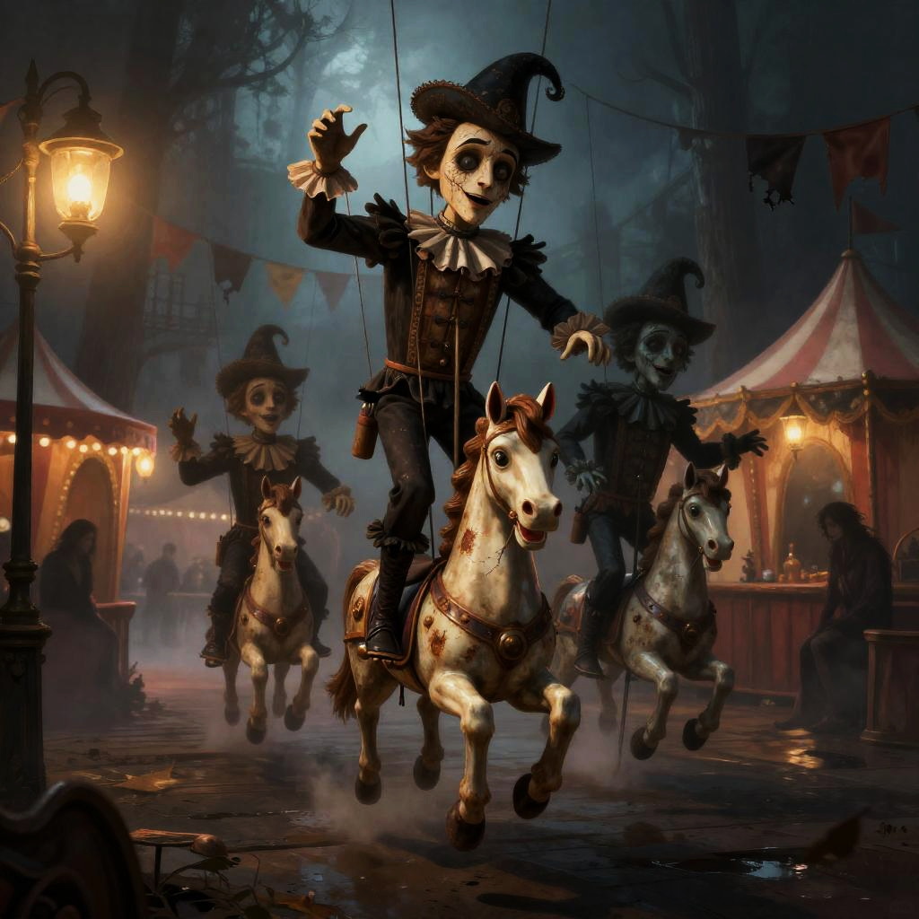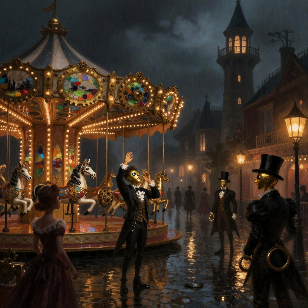 Clockwork Carnival: Brass Carousel at Night