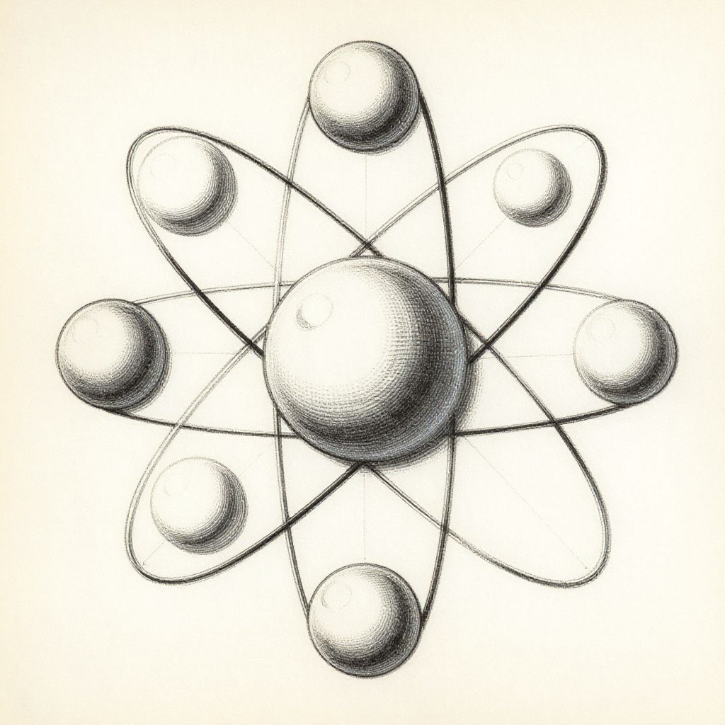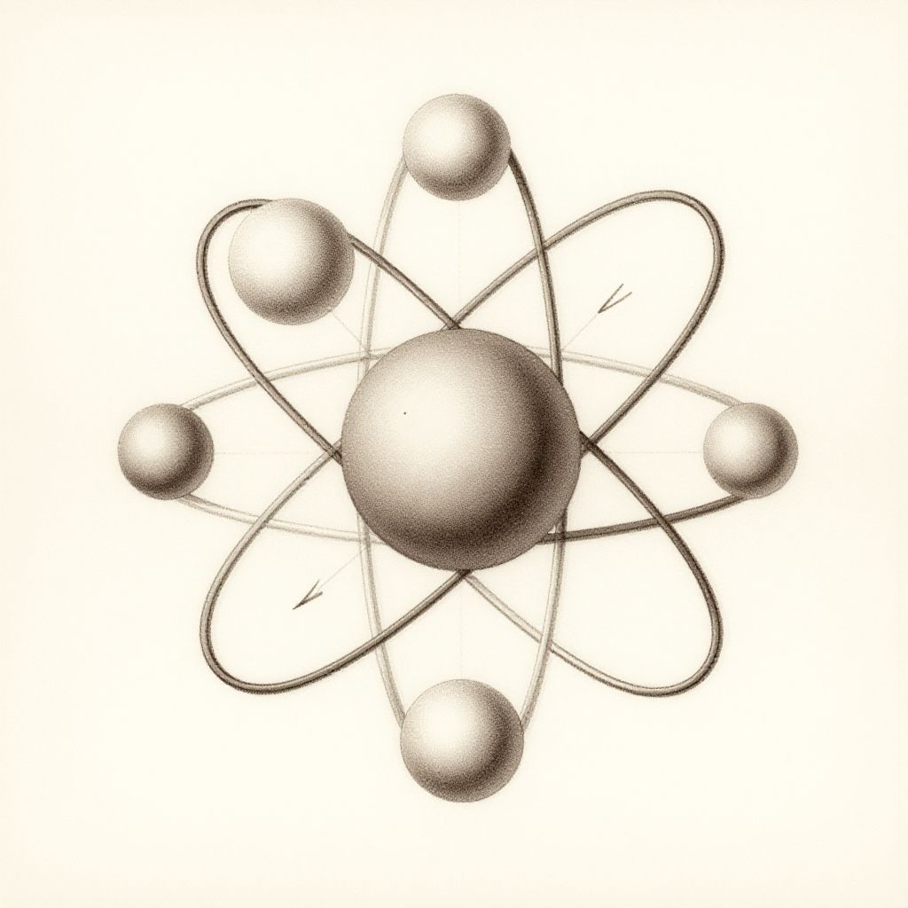 John Dalton atomic model drawing, schematic style with bold outlines, 19th century science lab manual, vintage typography labeling atoms, clean minimalist background, high detail