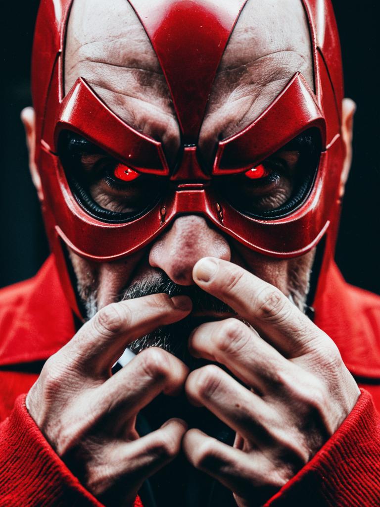 Man in Knuckles Costume, close-up detailed headshot with red makeup