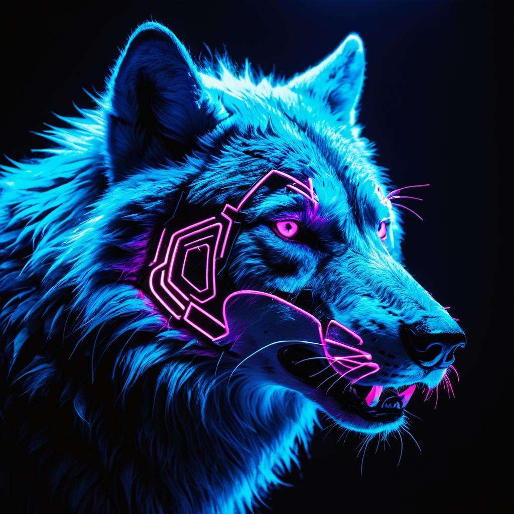 Neon Cyberpunk Wolf Head