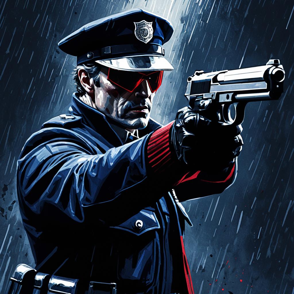 Vampire Policeman Aiming Gun Illustration