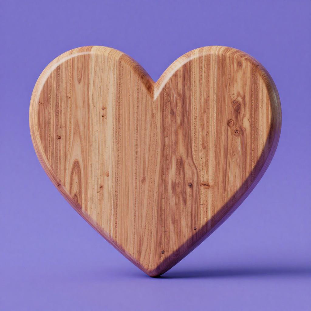 Heartart, realistic wood heart made out of wood, (lights:1.5), photohelper, render, cgi, 3d, extremely detailed, colored backdrop