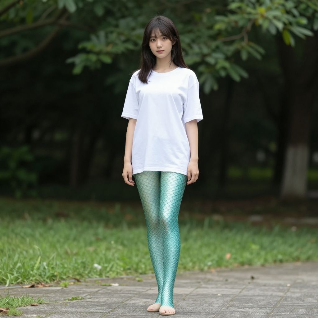 1girl, lamia, scales, white shirt, full body, outdoors
