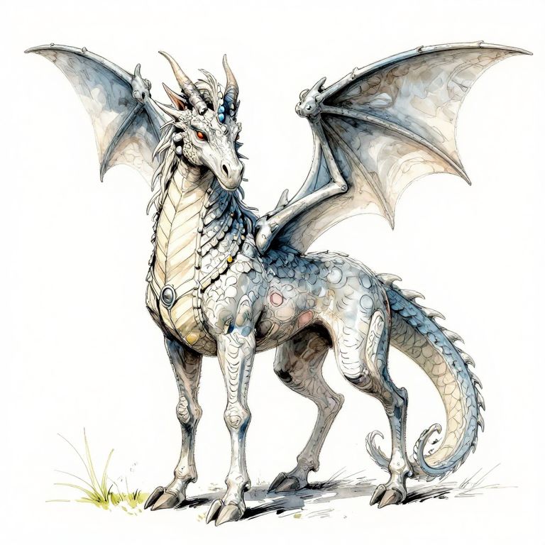 Unbeatable a opportunistic Pseudo dragon as a familiar animal, Equestrian portrait, Dungeons & Dragons, David Mack Style, Watercolor with ink pen outline,