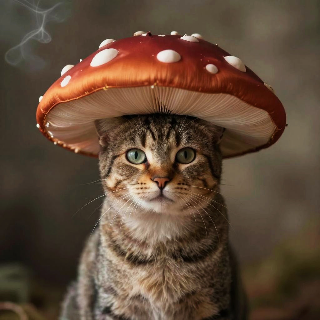 Vintage Cat with Mushroom Hat Portrait