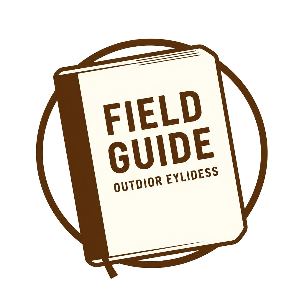 Retro outdoors logo featuring a field guide book, inspired by vintage aesthetics and adventurous spirit, earthy muted color palette, bold typography, evokes wilderness and nostalgia, perfect for outdoor enthusiasts