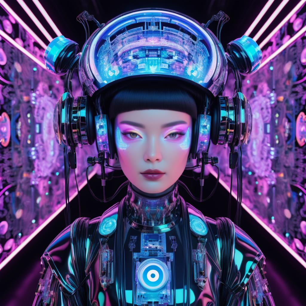 Futuristic Cybernetic Portrait with Neon Holographic Elements