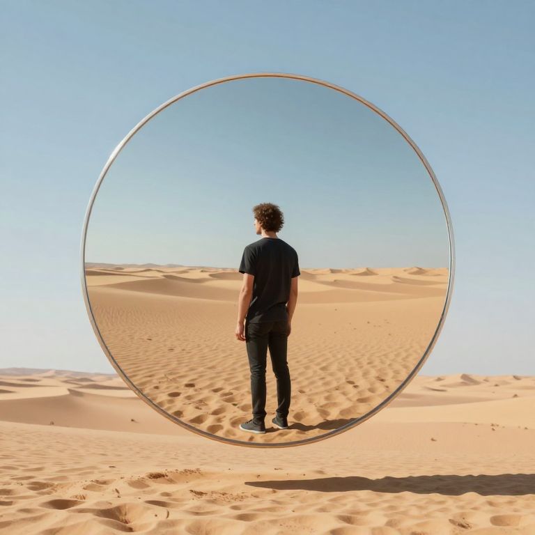 Surreal Mirror in Desert Landscape