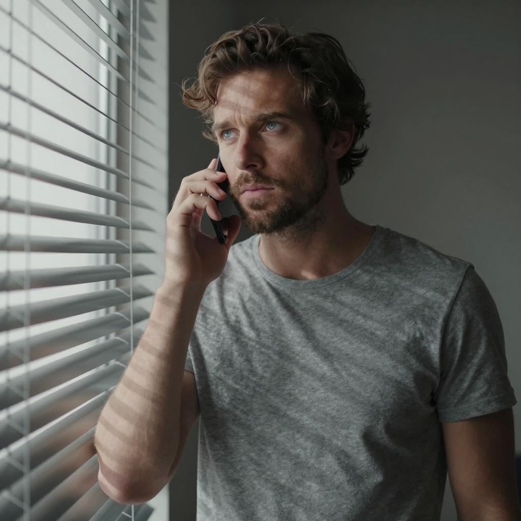 Man Peering Around Wooden Door