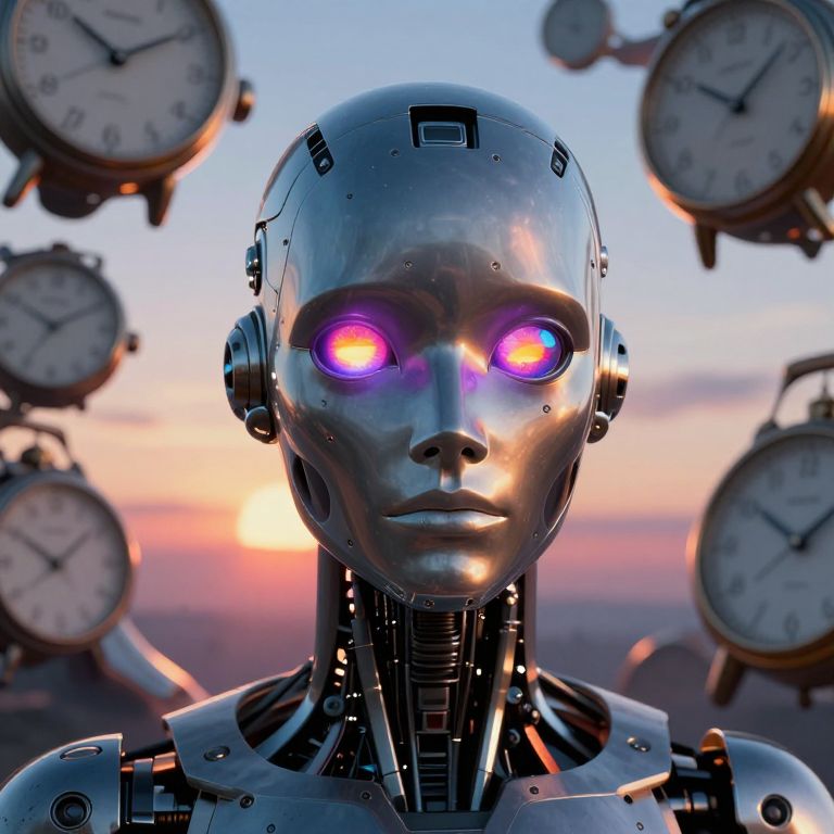 Create an intriguing scene in a surrealistic style, depicting a dreamlike landscape where a figure with a mechanical head stands before an antique mirror, reflecting its distorted image. The robotic figure wears a Victorian-era suit, blending elements of both past and future eras. In the background, melting timepieces and levitating objects emphasize the dreamlike quality of the scene, evoking a sense of wonder, curiosity, and slight unease as if the viewer is observing an inventor navigating the blurred lines between reality and imagination.