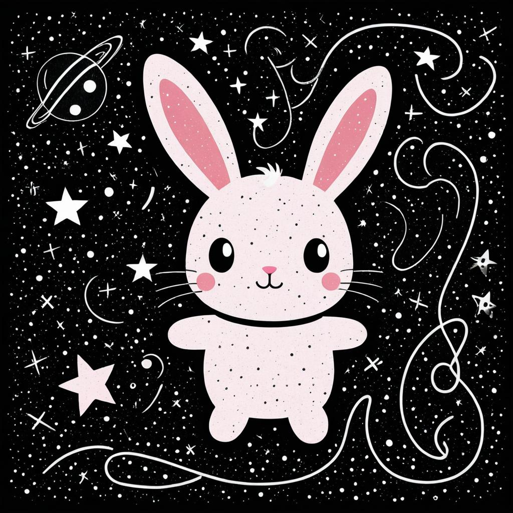 Simple cartoon drawing of a fat hamster in outer space, with a flat design style, star cluster background, sparkling stars, cheerful and adorable, easy to draw with simple lines and minimal details.