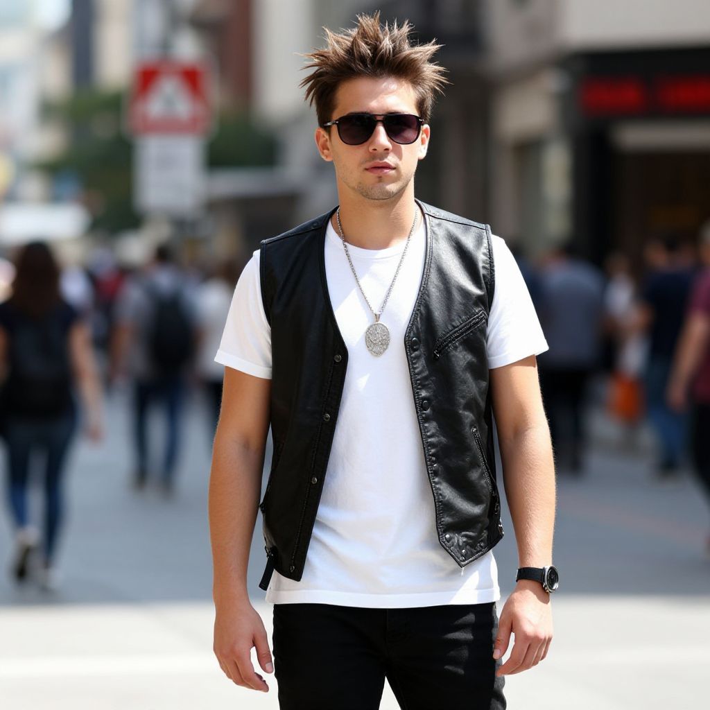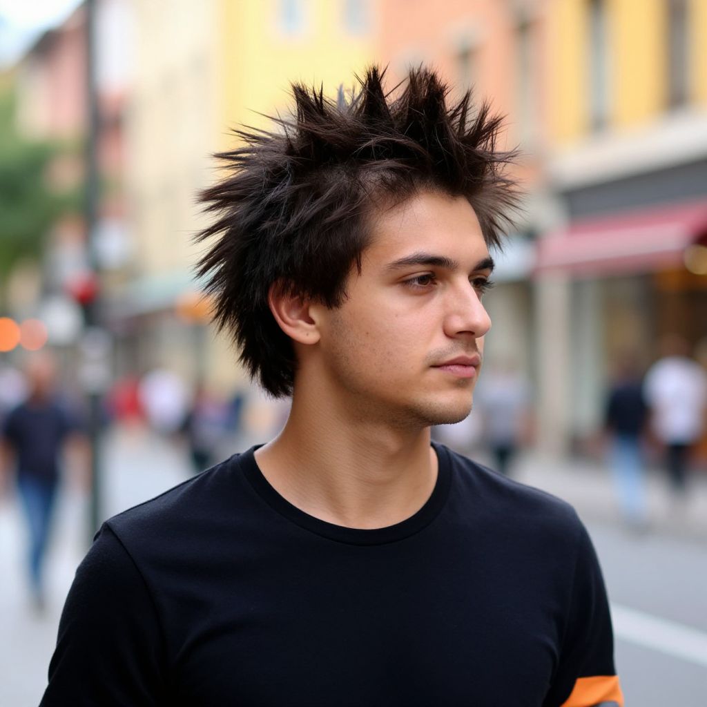 Confident Man with Spiky Hair in City