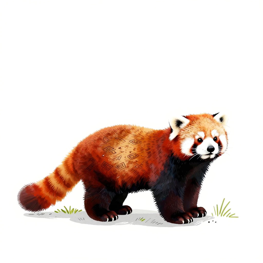Landscape painting of a hand-drawn illustration of a red panda, in a minimalistic style with bold colors, geometric patterns on a white background, high quality.