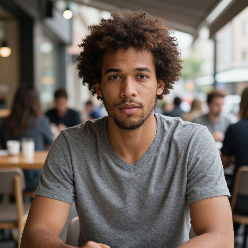 Young Man with Afro in Urban Setting