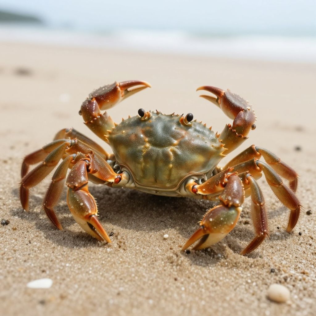 Score_9, score_8_up, score_7_up, score_6_up, score_5_up, score_4_up, rating_safe, source_photorealistic, photo, photorealistic, outdoors, no humans, animal focus, crab, beach