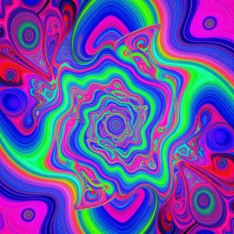 Artistic representation of an AI random generator producing endless streams of random data and colorful fractal patterns, mixing organic shapes with geometric forms, dreamy neon color palette, futuristic technology vibes, ultra HD digital painting