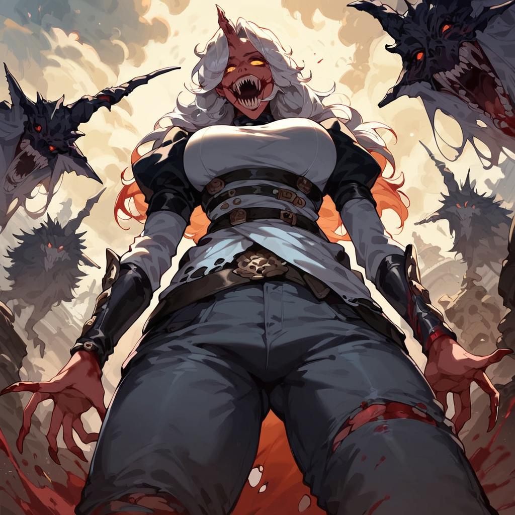 Score_9, score_8_up, score_7_up, robot girl, (robot joints, intervention unit, very complex robot, glowing che BREAK 1.2), full body, standimg, view from below, mechanical toes, solo, white long hair, large breasts, bangs, arched back, dark eyes, too tight burgundy hoodie, provocative, cosmic background, cables and wires everywhere, smirk, red theme, female full body, low angle view, white long hair with bangs, large breasts, arched back, dark eyes, smirking expression, tight burgundy hoodie, mechanical toes, cosmic background, cables and wires, red theme, provocative pose