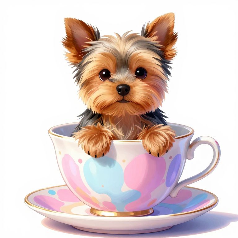 Adorable Yorkie in Pastel Teacup