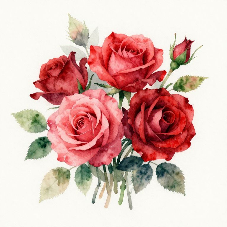 Watercolor Red and Pink Roses