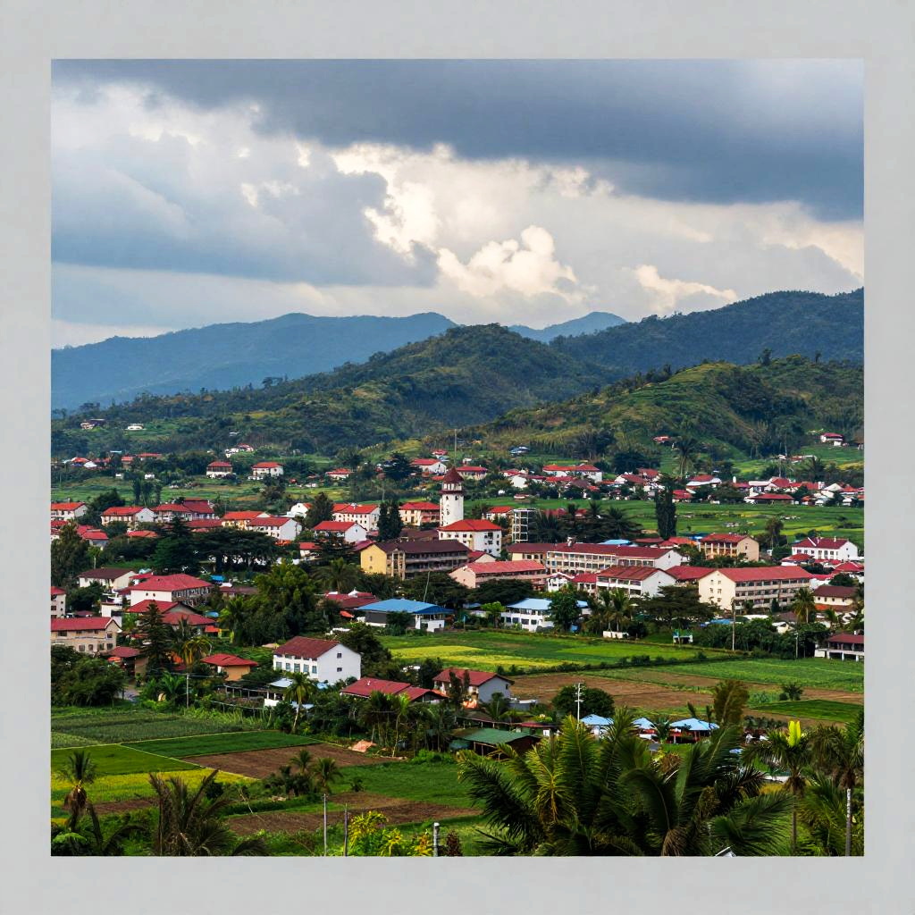 Panoramic Town Amidst Lush Greenery