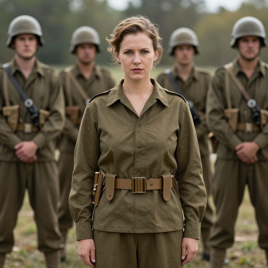 American Ww2, woman in military uniform standing in front of a group of soldiers