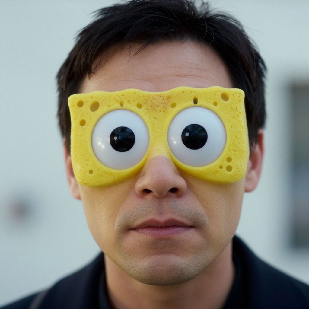 "Sponge Eye-Level close up Photo of a man, 36 years old, blade runner world, hope, main character, Shot on Afga Vista 400, Natural Lighting,"