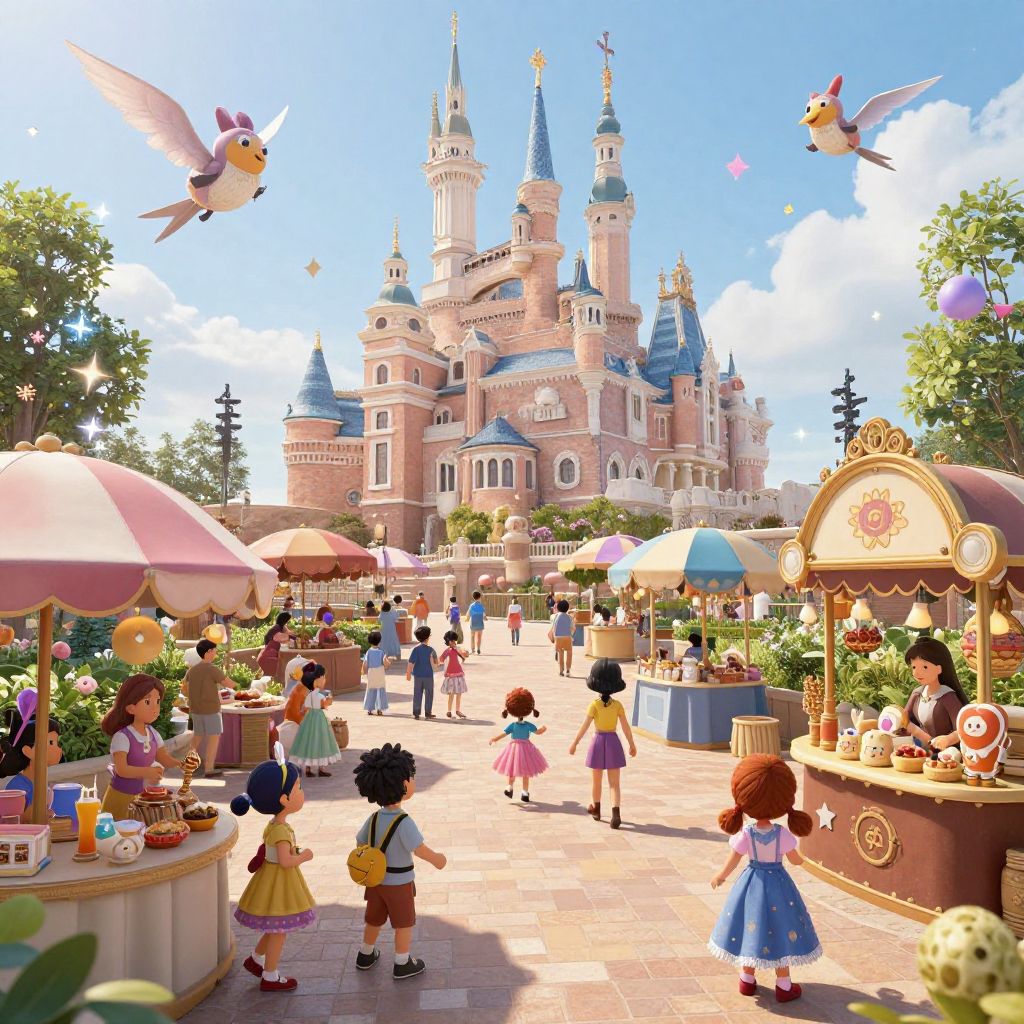 Disney movies generator visualization with a futuristic control room where an AI crafts classic and new fairy tale stories, surrounded by portals showing various magical worlds, dreamy pastel colors, soft glowing effects, ultra-realistic digital painting.