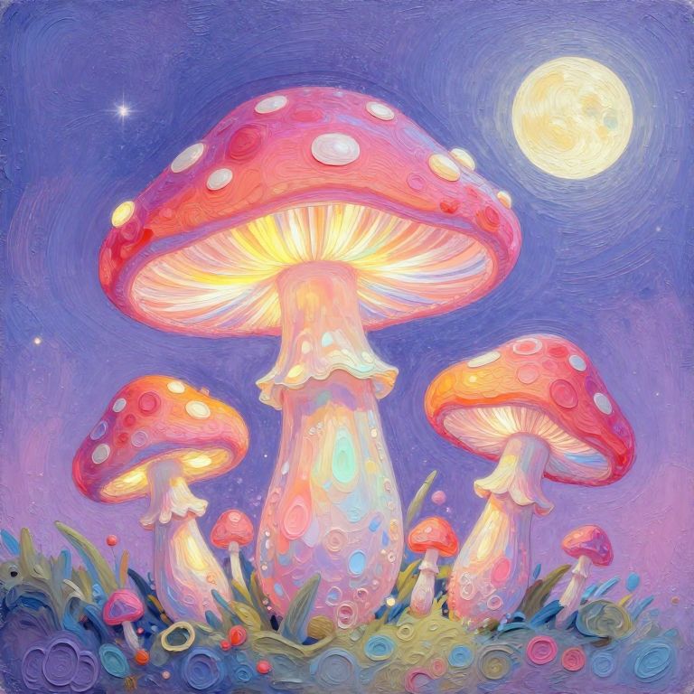 Colorful Iridescent Magic Mushrooms