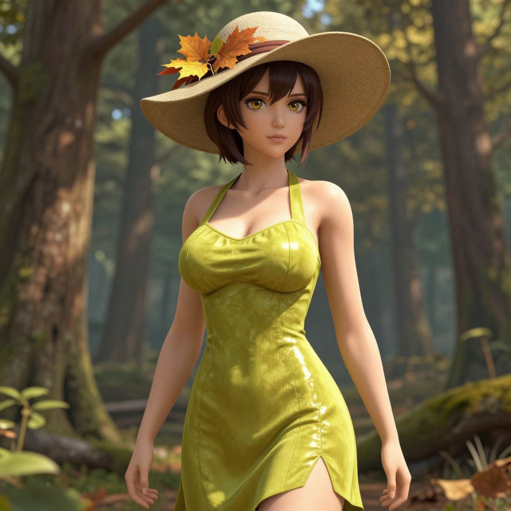A hourglass woman in a sleeveless grey tank top and distressed white denim shorts stands at a seaside cottage near a lighthouse, adorned with a long pendant necklace and a wide-brimmed straw hat. The scene is rendered in a vibrant digital manga style. Sexy. Pretty face and beutiful eyes Sexy. Pretty face and beаutiful eyes. Big breasts