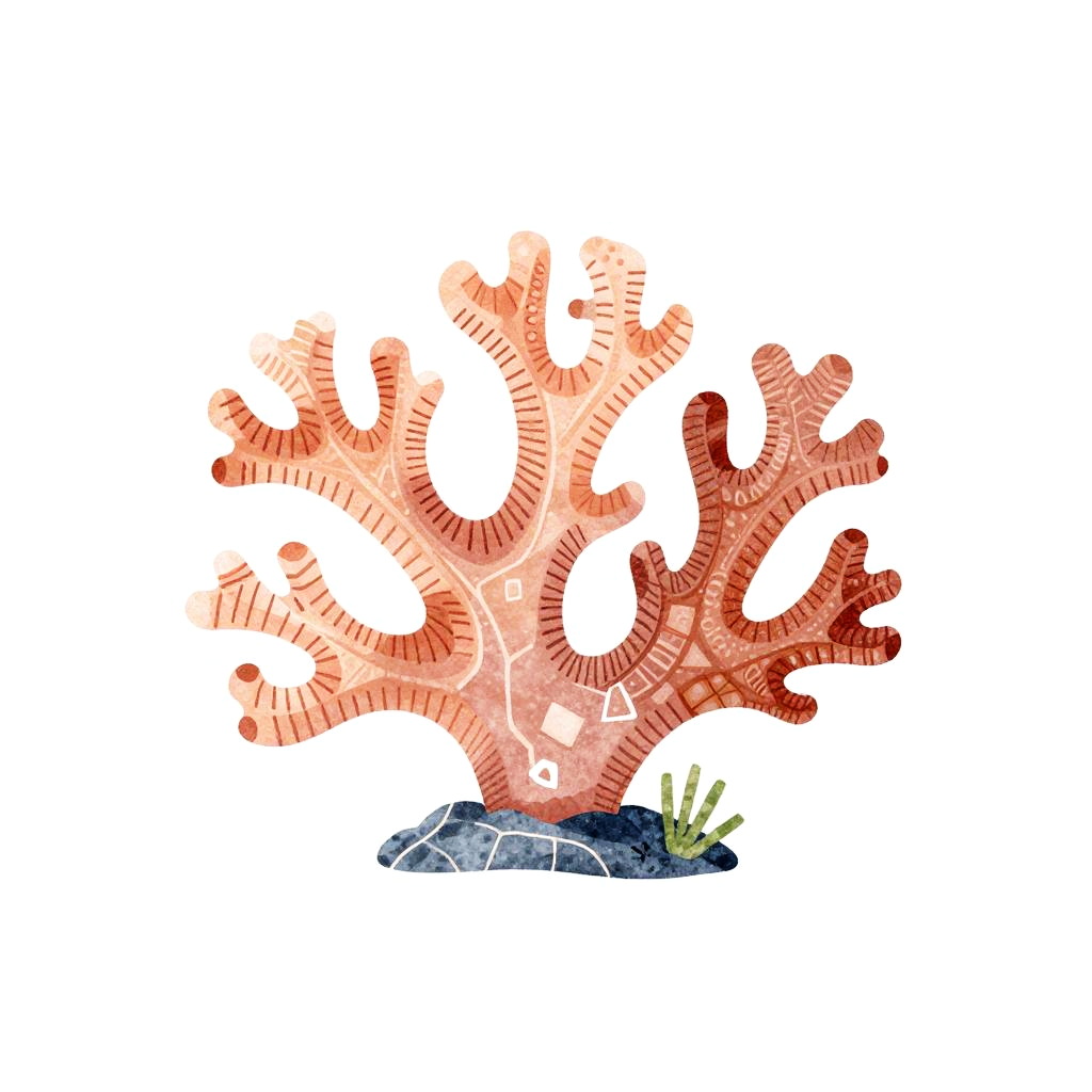 Landscape painting of a hand-drawn illustration of a coral, in a minimalistic style with geometric patterns, soft pastel hues on a white background, high quality.