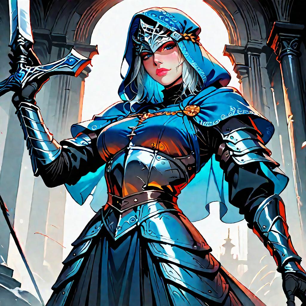 Score_9, score_8_up, score_7_up, sorce_Dark_Souls Knight Artorias, Artorias the Abysswalker, dark souls, bulky, shadows, medieval, dark theme, armor, greatsword, blue trim