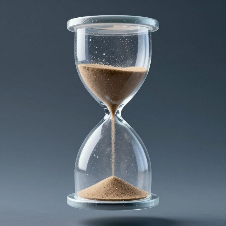 A colossal hourglass made of frozen water floats mid-air, its upper half turning to sand and vanishing before regenerating from the lower half.