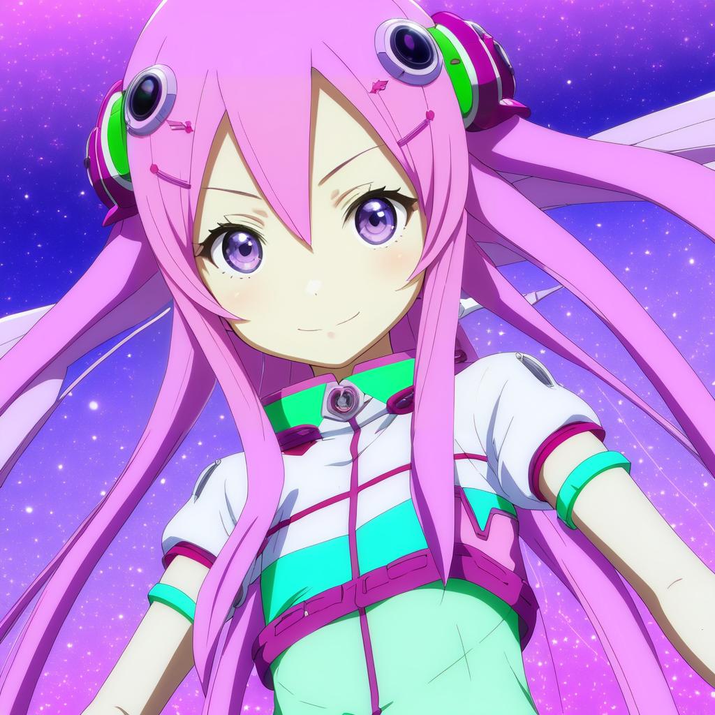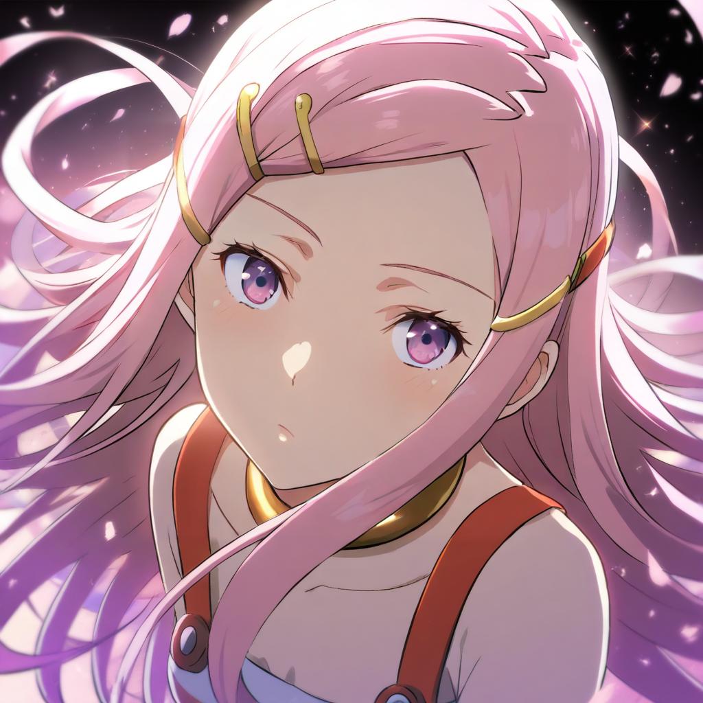 Anemone (eureka seven), eureka seven (series), 1girl, purple eyes, pink hair, long hair, hairclip, by artist kita senri, leet