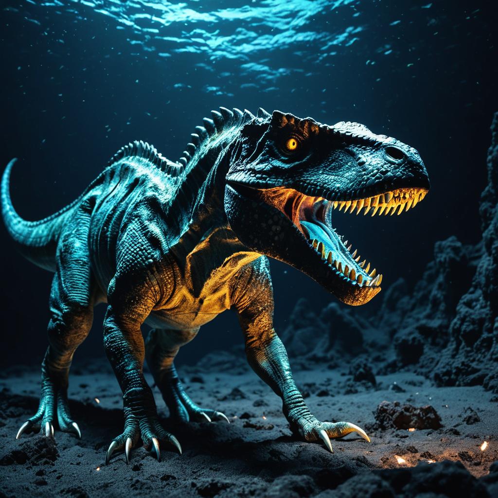 Bioluminescent Baryonyx Dinosaur at Deep Ocean Vent