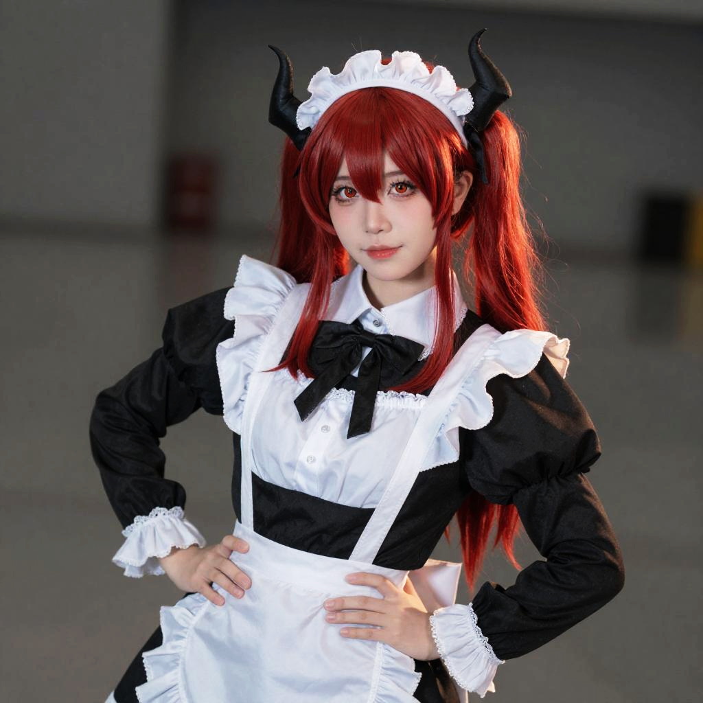 Cosplayer in Airi the Infernal Temptress Maid Costume