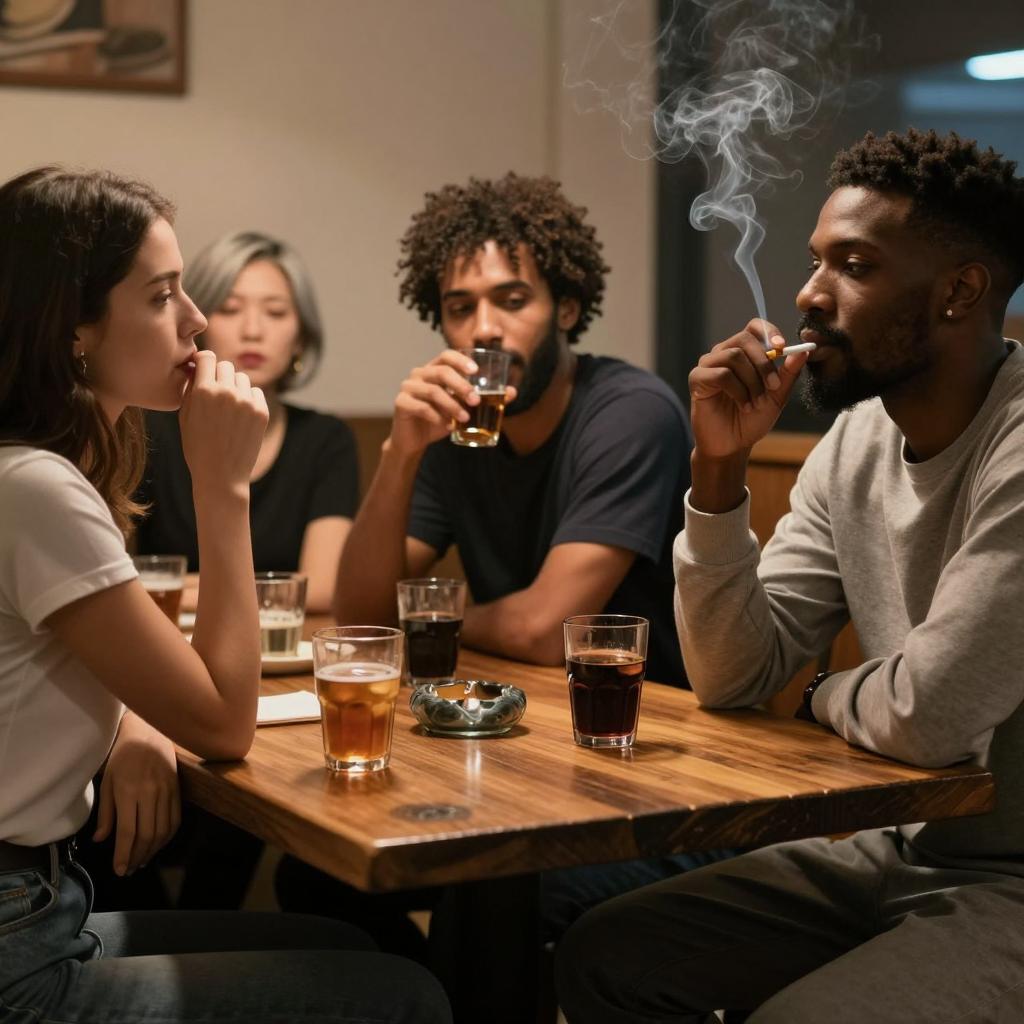 Evening Conversations at a Dimly Lit Table