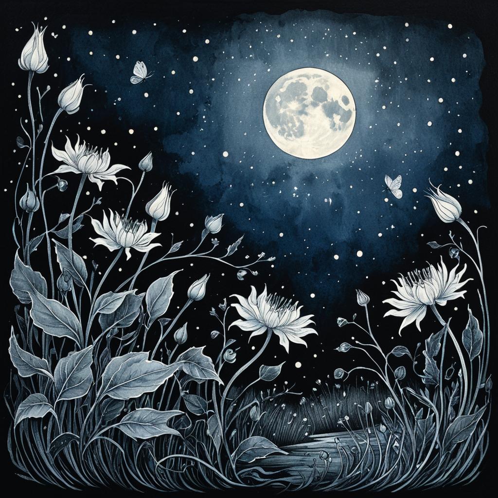 Moonlit Night with Moonflowers and Will-o'-the-Wisp