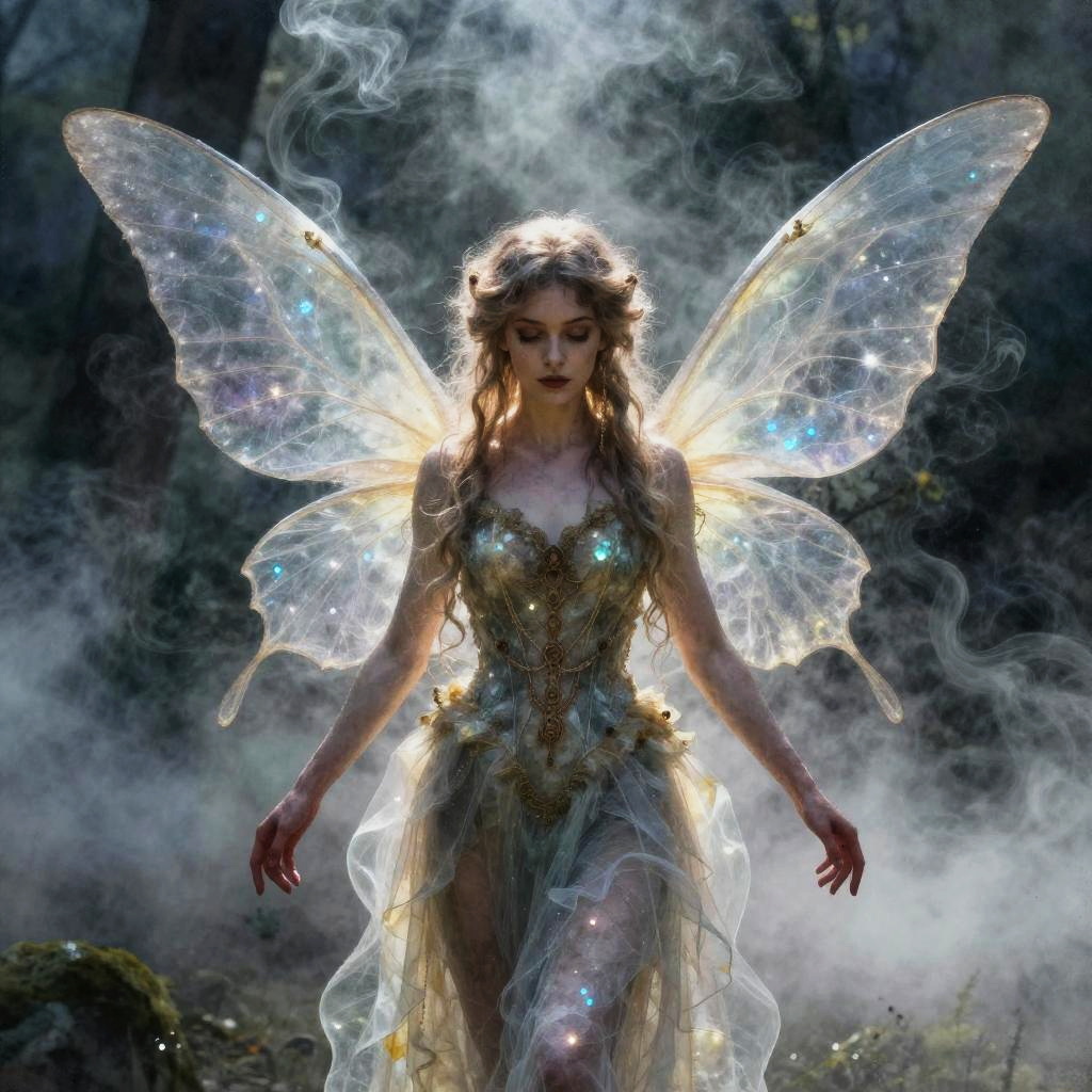 Ethereal water nymph with flowing silver hair, in an enchanted waterfall hidden in a lush jungle, pastel chalk and watercolor with soft gradients, magical sparkles drifting in the air, fantasy art, vivid colors, dappled light, misty atmosphere, soft rim light, ultradetailed foliage, mossy stones, fluttering moths, dramatic backlight, subtle film grain, cinematic composition, serene expression, graceful posture, fine texture, storybook charm, dreamy ambience, high detail, crisp focus.