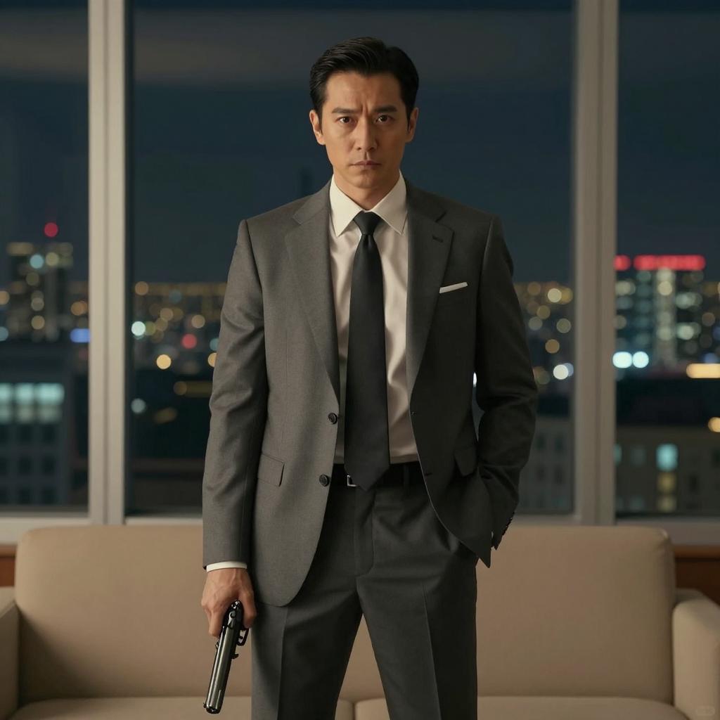 Intense Man Aiming Handgun in Suit