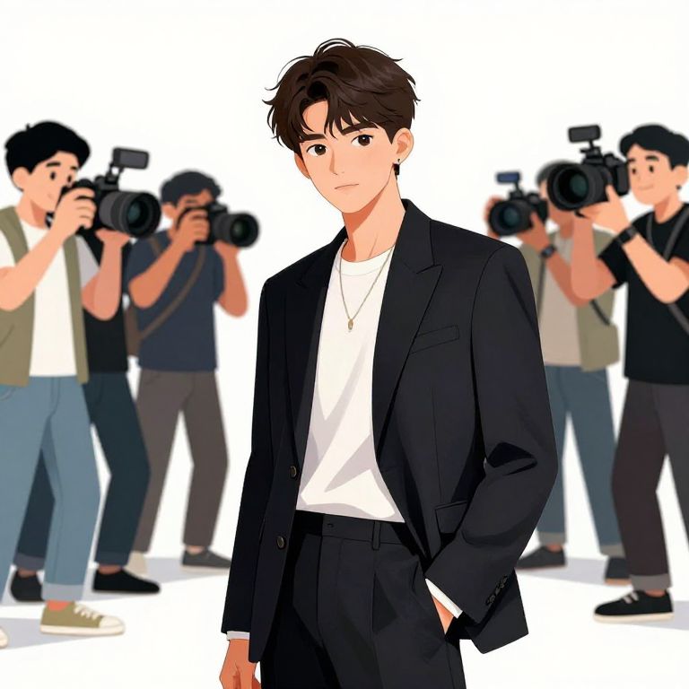 Burst Mode Master class of a famous young actor, paparazzi, fans, on a white background, illustration,