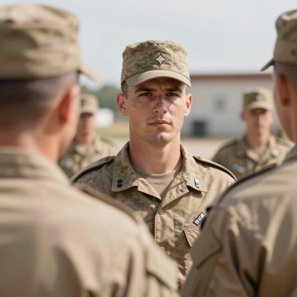 Two military officers stand facing each other in front of a large green aircraft with an open door. The Black officer on the left is wearing a dark blue dress uniform with an American flag patch on the sleeve and a dark visor cap. The white officer on the right wears a green military dress uniform with several medals, a red visor cap, and a smile. A third person in uniform is partially visible inside the aircraft behind them.